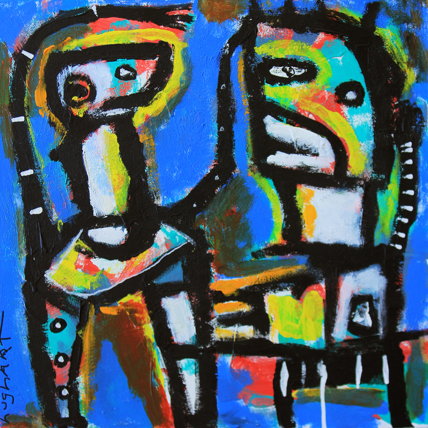 I was thinking about one of my all time favorite artists, Jean Dubuffet recently and also about doing a more “modern art” type of painting. Something that would fit in that speical room in that special house. And this painting is what turned out. Do you like it?