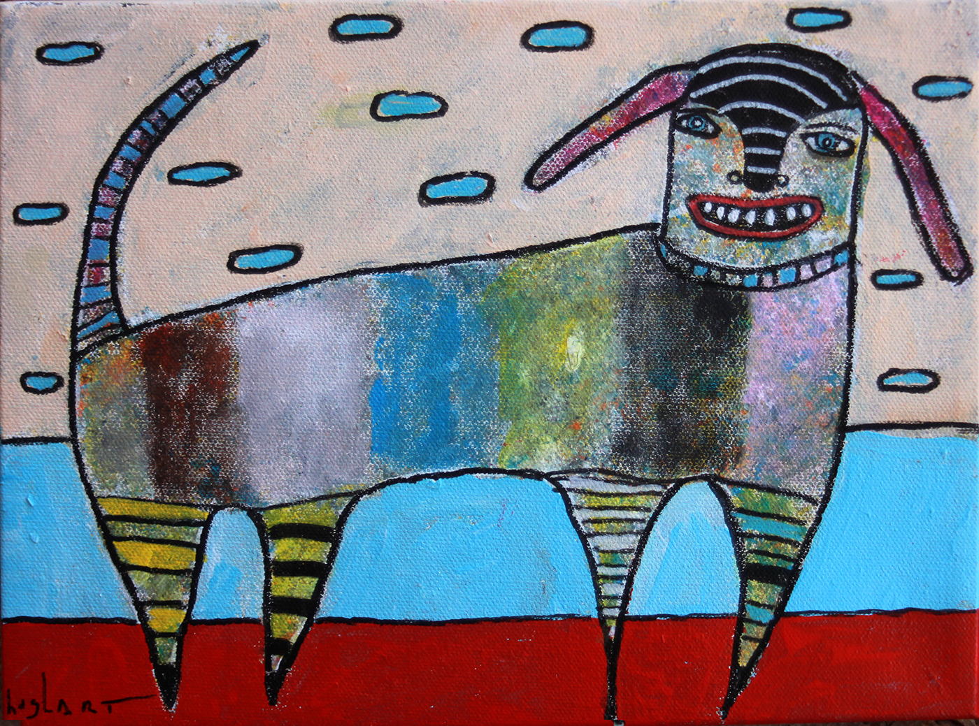 “DOESN’T BITE is a 9 x 12 x. .75 inch acrylic done on a high quality gallery wrapped (no staples on sides) canvas. Painted in 2026. Shipping is free in the United States. Please contact me for overseas shipping.