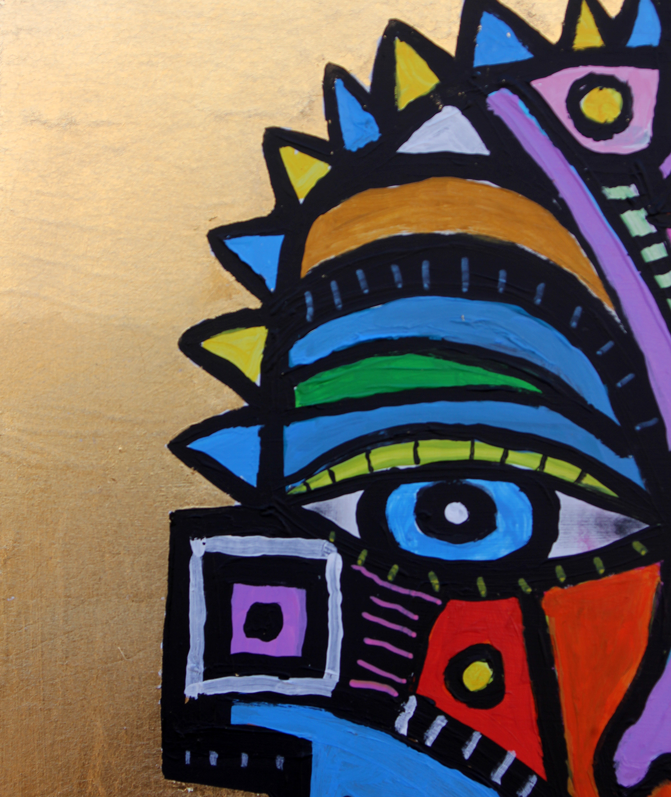 “GOLDEN BOY” is a 20 x 20 x. .75 inch acrylic done on a high quality wood panel. The background is done with gold leaf. Painted in 2025. Shipping is free in the United States. Please contact me for overseas shipping.