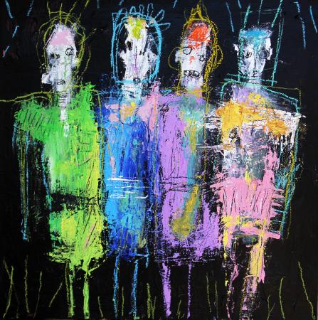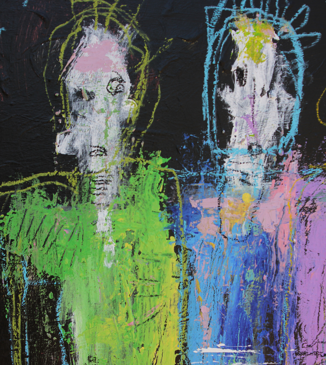 “HOLY GHOSTS” is a 30 x 30 x 1.5 inch mixed media done on a high quality gallery wrapped (no staples on sides) canvas. Painted in 2025. Shipping is free in the United States. Please contact me for overseas shipping.