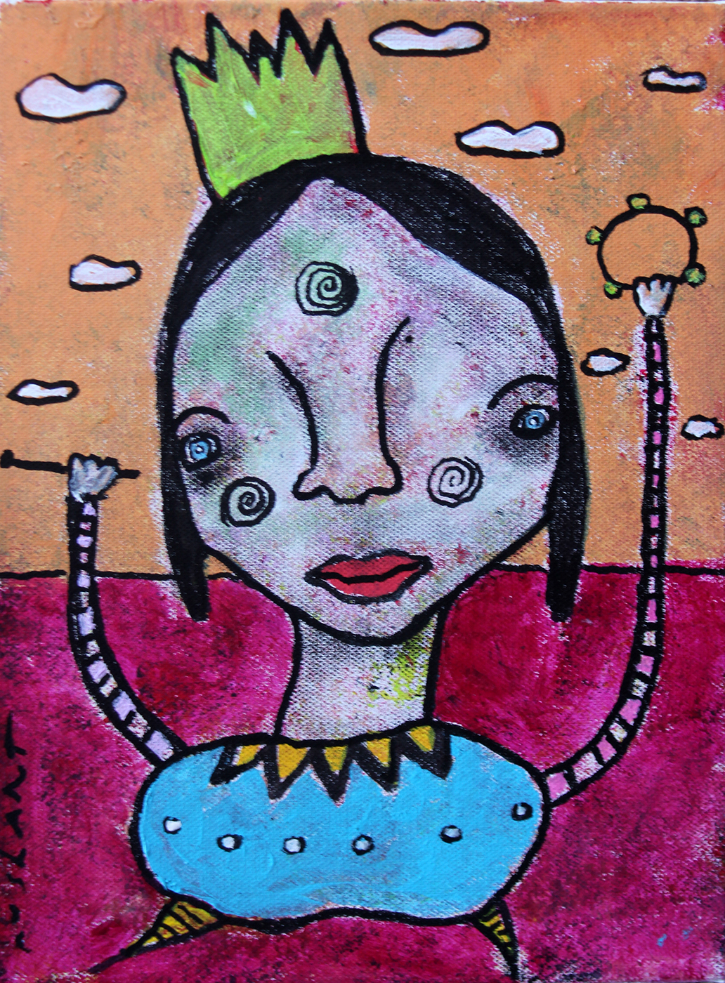 “THE BUSKER” is a 9 x 12 x. .75 inch acrylic done on a high quality gallery wrapped (no staples on sides) canvas. Painted in 2026. Shipping is free in the United States. Please contact me for overseas shipping.